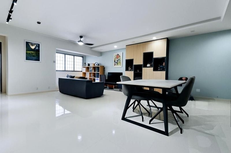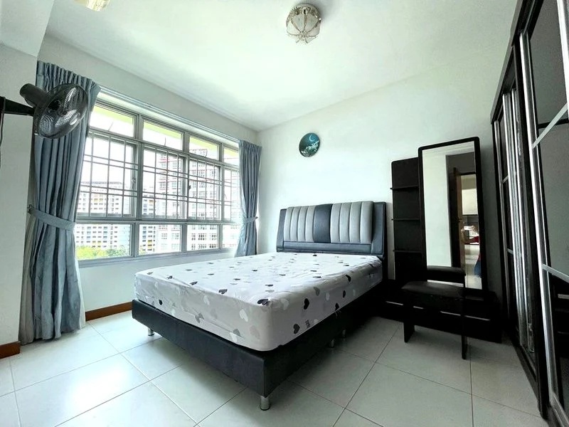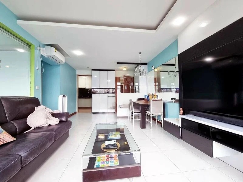 This well-maintained 4-bedroom flat boasts a practical layout with standout features including a walk-in wardrobe area, modern bathrooms with stylish vessel sinks, and integrated study spaces in the bedrooms. The air conditioning units and ceiling fans ensure comfort year-round, while the exposed white PVC piping adds a unique character to the space.