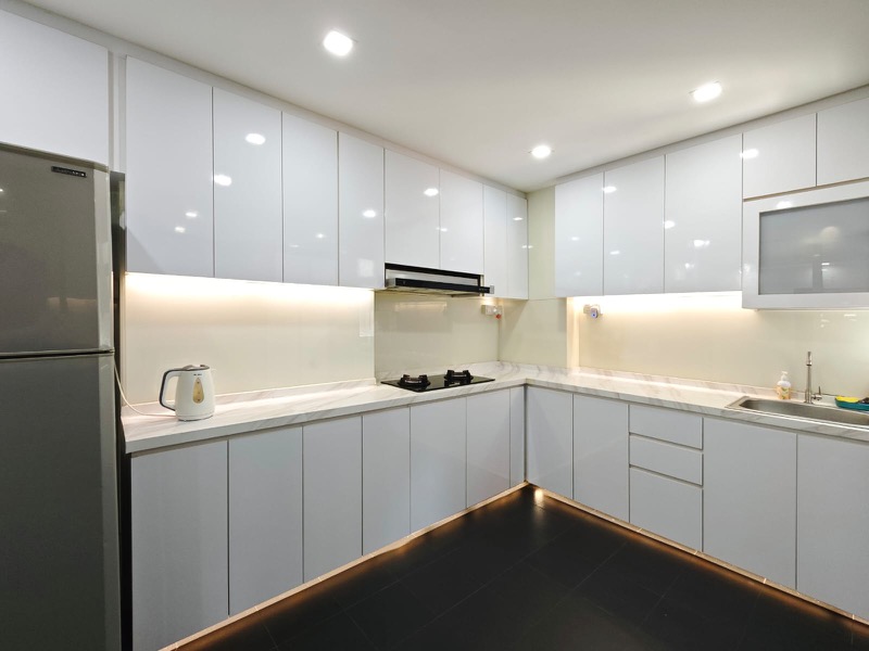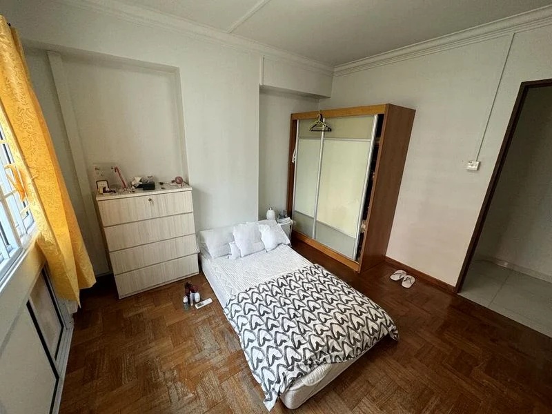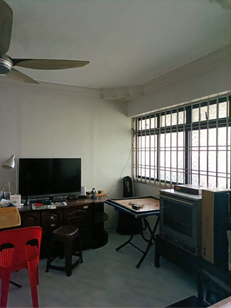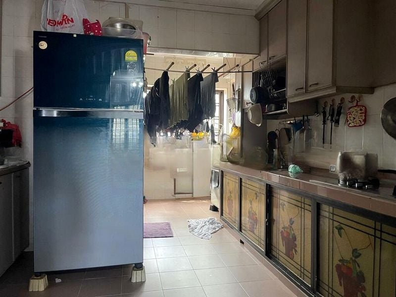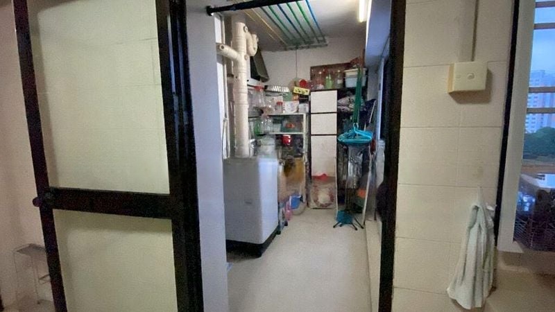 Step into this generously sized 3-bedroom flat and feel the warmth of home with its lived-in charm. The moderate natural light filters through the window grilles, illuminating the tiled flooring and creating a cozy ambiance that invites you to envision your personal touches. The built-in kitchen cabinets and gas hob are ready for your culinary adventures, while the dedicated service yard area adds practicality to your daily routine.