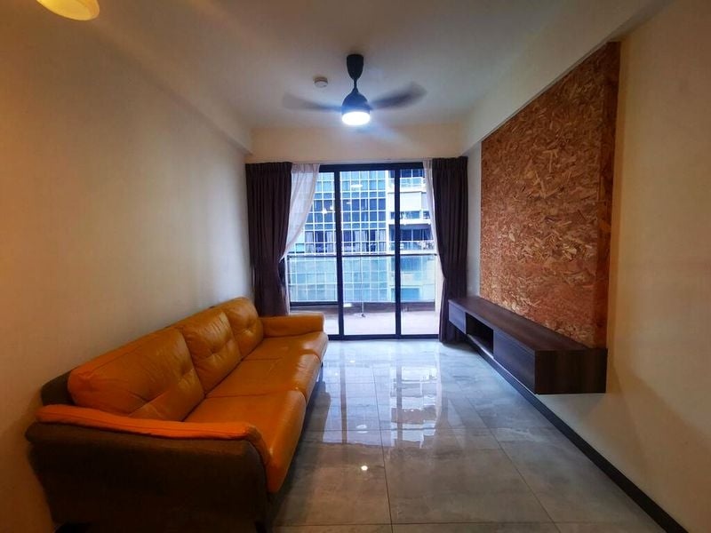This efficient 2-bedroom, 2-bathroom layout features standout elements such as floor-to-ceiling built-in storage, a galley kitchen equipped with a built-in oven, and a dining area with large glass windows overlooking the kitchen. The master bedroom boasts large windows with roller blinds and an integrated study desk, while the second bedroom provides a cozy study area, perfect for work or relaxation.