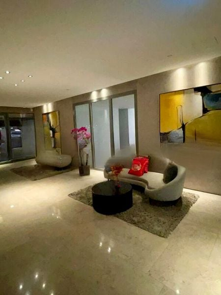 This spacious 3-bedroom unit boasts a master bathroom with a luxurious bathtub positioned by a large window, allowing you to soak in the city views. The marble-look flooring throughout adds a touch of sophistication, while the balcony with glass railing offers an unobstructed vista, perfect for entertaining or enjoying quiet moments. With partial furnishing and built-in window ledges, this home is ready for your personal touch.