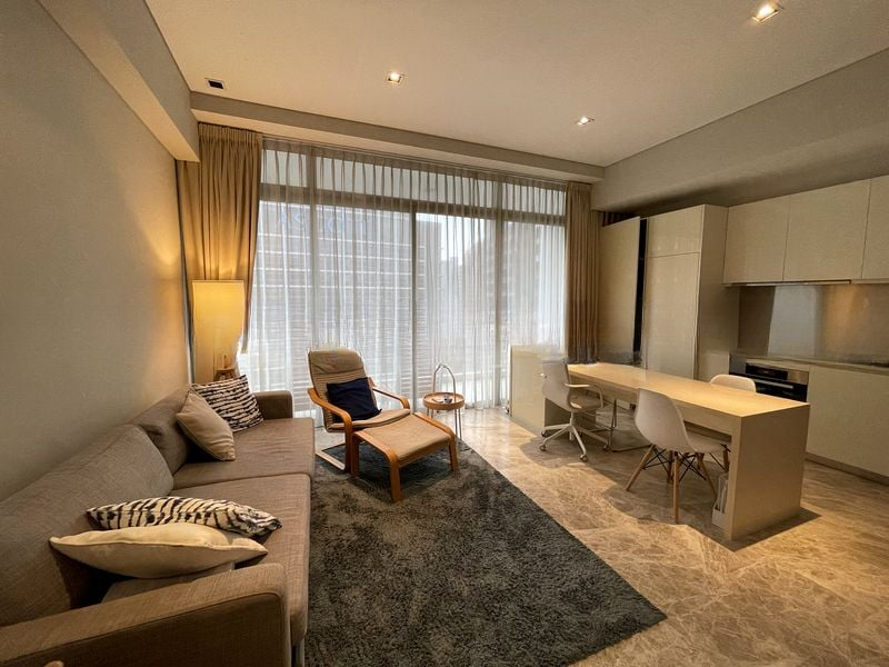 Step into a world of elegance as you enter this well-maintained unit at The Laurels. Bathed in natural light, the open layout of the living room features floor-to-ceiling windows that frame breathtaking views of the city skyline and lush greenery. The ambiance is bright and airy, inviting you to relax and unwind in this serene space.