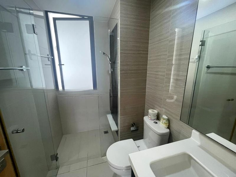 Step into a world of modern elegance at this beautifully renovated unit in Blossom Residences. The open-concept living area greets you with abundant natural light, accentuated by a striking wood slat feature wall and designer pendant lighting. Enjoy the seamless flow to the balcony, where outdoor seating invites you to unwind while taking in the lush greenery and urban landscape views.