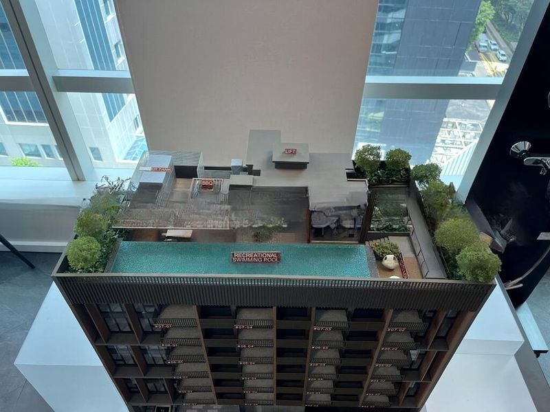 This efficient 797 sq ft 2-bedroom unit boasts a well-thought-out layout, featuring a master bedroom with an en-suite bathroom, a second bedroom adjacent to a common bath, and a dedicated household shelter for added convenience. The glass-walled rooftop gym, equipped with modern cardio and strength equipment, offers a unique workout experience with stunning pool-facing views, while the infinity-edge pool invites you to soak in the sunset.