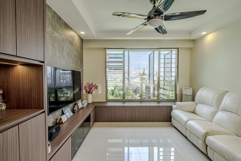 Step into a bright and airy sanctuary at 574B Woodlands Dr 16, where polished white floor tiles reflect abundant natural light that fills the space. The large windows invite in stunning views of lush greenery and the urban landscape, creating a serene ambiance that instantly makes you feel at home.
