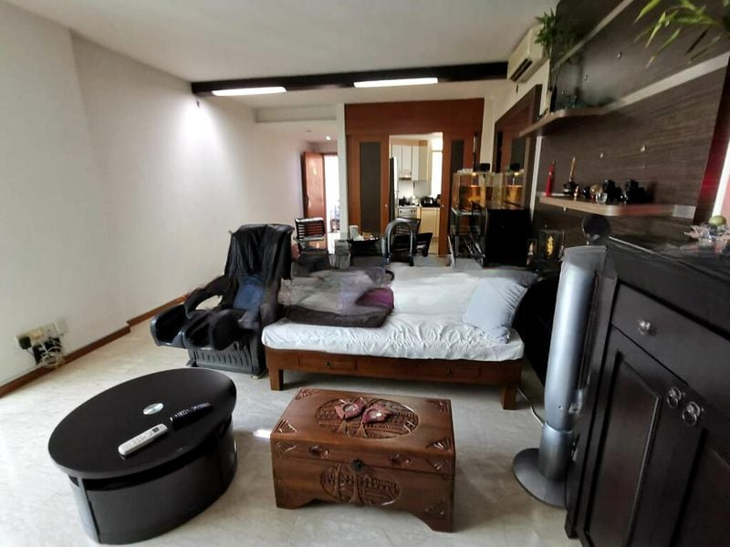 Step into a sanctuary of light and space, where large floor-to-ceiling windows invite abundant natural light, creating a bright and airy ambiance. The polished marble flooring in the living room reflects elegance, while the classic parquet flooring in the bedrooms adds warmth. Unique features like a helicopter-themed ceiling light and a built-in wood veneer TV feature wall enhance the charm of this well-maintained unit.