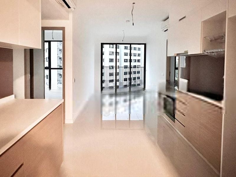 Step into a world of modern elegance as you enter this brand-new 3-bedroom unit at Treasure at Tampines. Bathed in abundant natural light, the open-concept living area features floor-to-ceiling windows that frame stunning views of the city skyline and lush greenery. The glossy floor tiles enhance the airy ambiance, making it a perfect space for relaxation and entertaining.