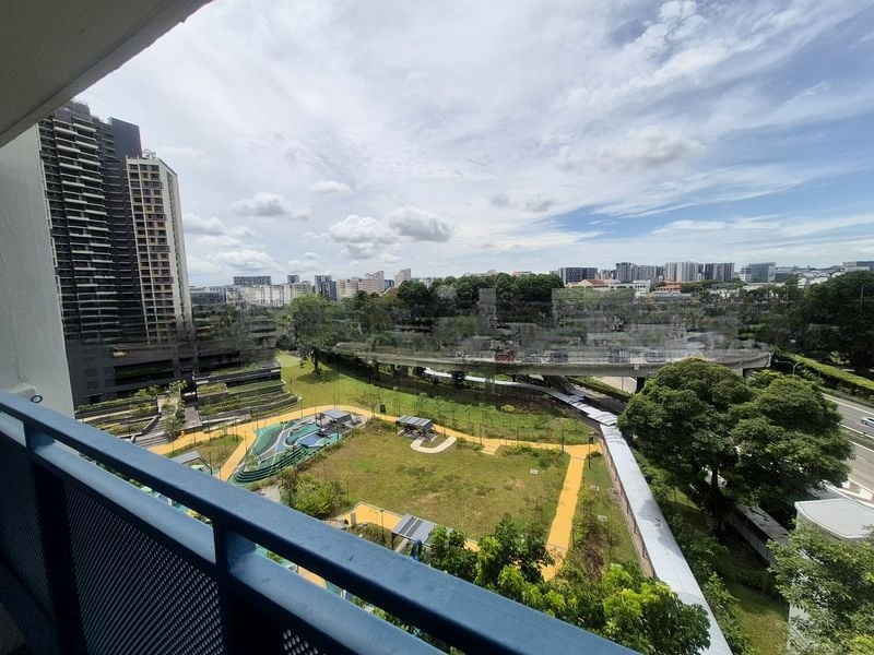 Step into this inviting 2-bedroom flat where classic terrazzo flooring greets you in the living area, complemented by a warm ambiance and moderate natural light. The open layout seamlessly connects the living and dining spaces, offering a functional yet simple design that feels both spacious and cozy. Enjoy views of lush greenery and surrounding buildings from the comfort of your home.