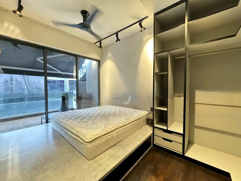 Step into this beautifully renovated 2-bedroom unit at The Promenade@Pelikat, where modern minimalist design meets comfort. The moment you enter, you are greeted by an inviting ambiance, enhanced by moderate natural light filtering through large windows, offering serene views of lush greenery and surrounding residential buildings. The tasteful finishes, including wall decals and a stylish glass shower partition, create a warm and welcoming atmosphere.
