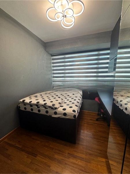 This well-maintained 4-bedroom, 4-bathroom unit boasts a functional layout with standout features in every room. The master bedroom offers a built-in storage bed with a polished wood finish and an integrated study desk, while the second bedroom is designed for dual workstations beneath an ornate chandelier. Each bathroom is a sanctuary with walk-in showers and luxurious marble finishes, ensuring comfort and style throughout.