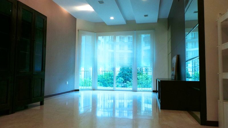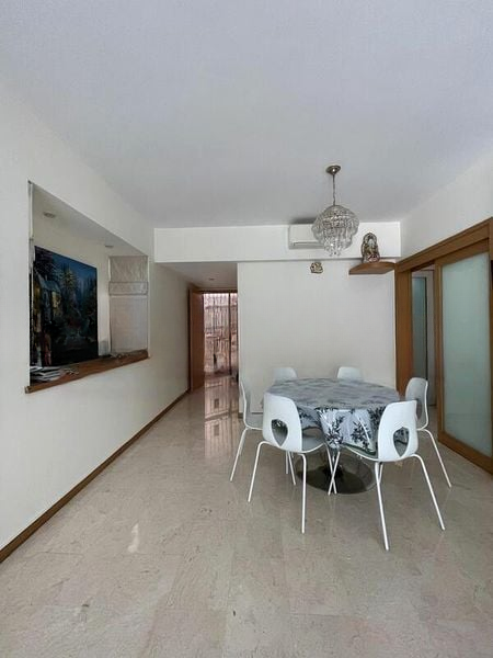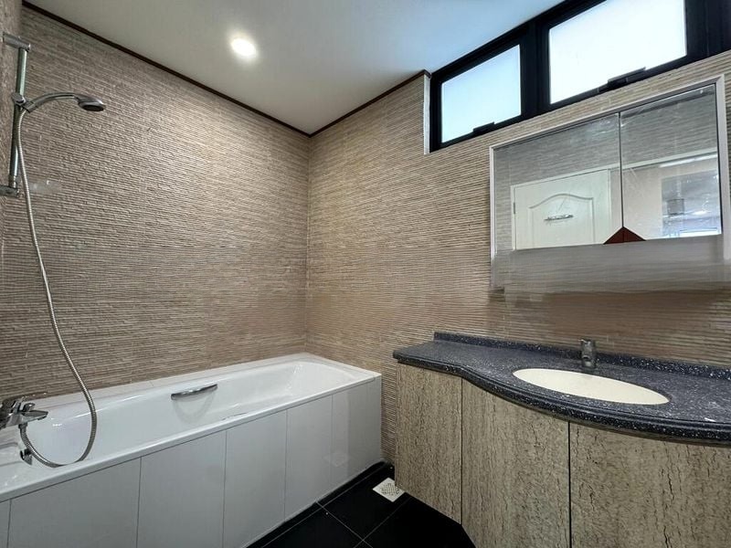 Step into a beautifully renovated sanctuary where modern minimalism meets urban elegance. The living area greets you with stunning marble flooring that reflects natural light, creating an inviting ambiance. A wood-paneled feature wall and a wall-mounted TV add a touch of sophistication, while the full-height padded headboard in the master bedroom promises comfort and style.