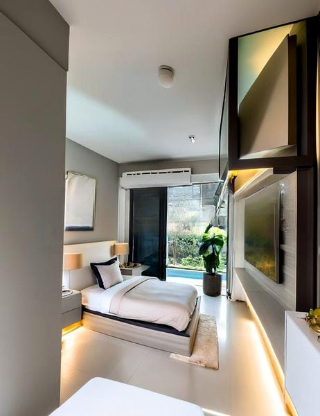 Step into a bright and airy sanctuary at ISUITES @ PALM, where abundant natural light floods the space, highlighting the elegant finishes and creating a welcoming ambiance. The unobstructed city views from the large sliding glass doors invite you to unwind on the balcony, offering a perfect blend of indoor comfort and outdoor relaxation.
