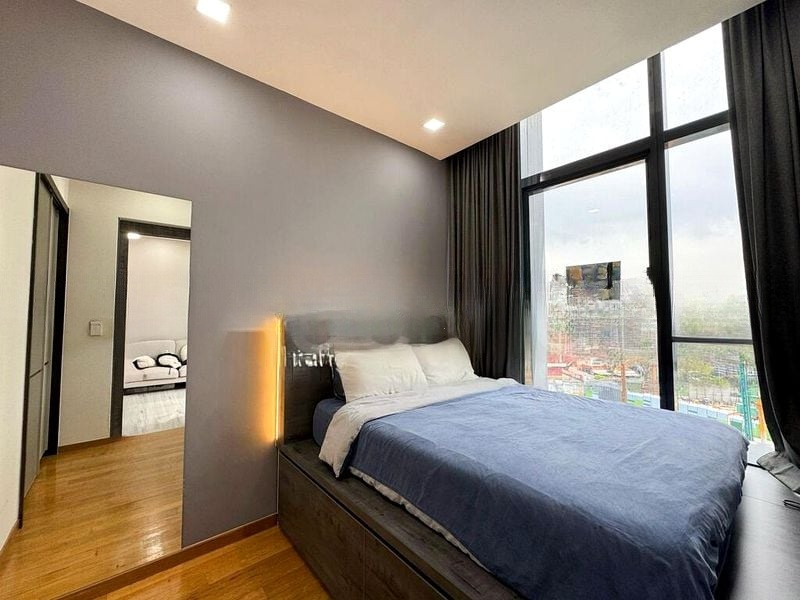 Step into a world of elegance as you enter this brand-new unit at Peak Residence. The abundant natural light floods through the large floor-to-ceiling windows, illuminating the exquisite marble-look porcelain flooring. The modern minimalist ambiance creates a serene atmosphere, perfect for relaxation and entertaining.