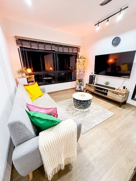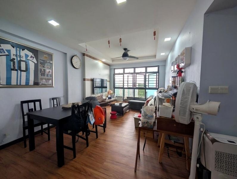 This well-maintained 3-bedroom flat features a functional layout with a spacious living room that seamlessly flows into the dining area, complete with a wooden dining table and decorative display shelving. The bedrooms are thoughtfully designed, with ample storage and a cozy ambiance, making it ideal for families. Enjoy the convenience of built-in air conditioning and ceiling fans with integrated lights, ensuring comfort throughout the year.