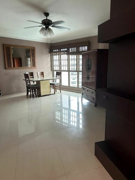 Step into this beautifully renovated HDB flat and be greeted by an abundance of natural light that fills the open-concept living and dining areas. The large windows frame serene views of lush greenery, creating a tranquil ambiance. The modern finishes, including a striking mirrored feature wall and cove lighting, enhance the bright and airy feel of the space, making it perfect for relaxation and entertaining.