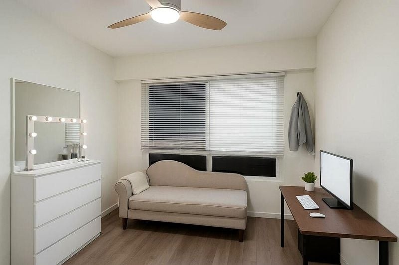 This well-maintained unit boasts three spacious bedrooms, including a master suite with a built-in sliding wardrobe and integrated vanity unit. The common bedroom features a practical integrated study desk and a bunk bed, ideal for families. The stylish bathroom is equipped with a modern vessel sink and a wood-look vanity cabinet, offering both functionality and elegance. With a total floor area of 1,227 sqft, this home is designed for comfortable living.