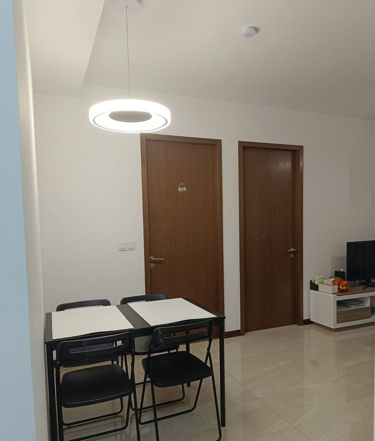 Step into this beautifully renovated unit at Normanton Park and be greeted by an abundance of natural light pouring through the floor-to-ceiling windows, showcasing breathtaking panoramic views of lush greenery, the distant sea, and bustling port activity. The modern minimalist ambiance is accentuated by polished floor tiles and a stylish circular pendant light, creating an inviting space that feels both spacious and serene.