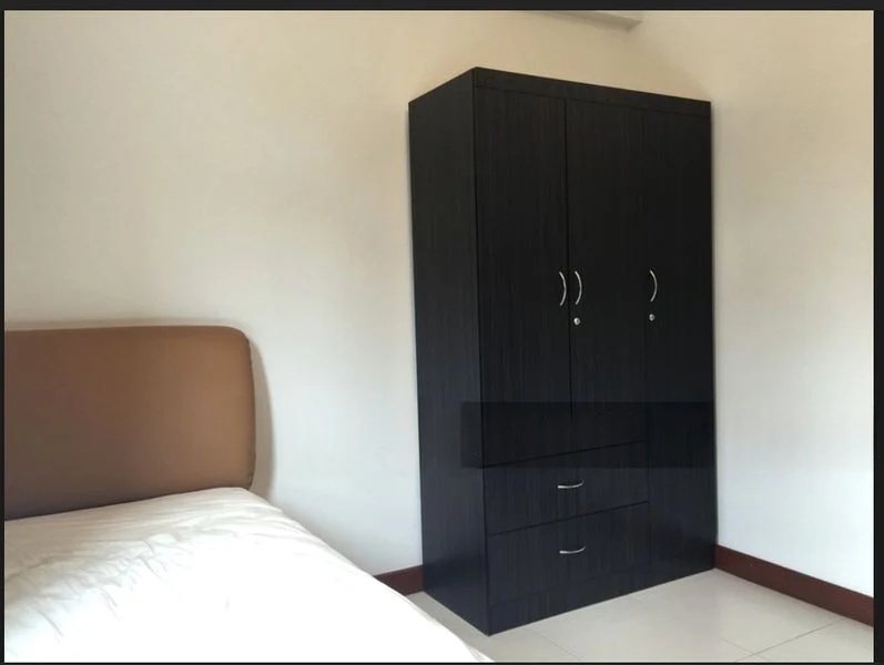 Step into a well-maintained 2-bedroom flat at Ghim Moh Link, where modern simplicity meets functional living. The space is bathed in natural light, highlighting the elegant white walls and light-colored floor tiles that create a bright and welcoming atmosphere. The standout dark wood wardrobe adds a touch of sophistication, while the kitchen boasts wood-grain laminate cabinetry and a sleek white tiled backsplash, perfect for culinary enthusiasts.