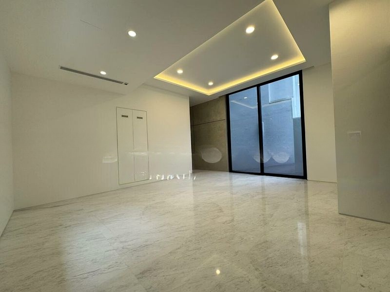 Step into a world of elegance as you enter this beautifully maintained designer home, where abundant natural light floods the space, creating a bright and airy ambiance. The striking double-volume ceiling in the dining room draws your eyes upward, while the large wooden pivot door invites you into a sanctuary of style and comfort. Enjoy views of lush greenery from the expansive living room, enhanced by large sliding glass doors that seamlessly connect indoor and outdoor living.