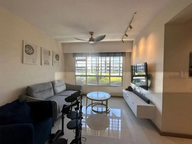 Step into this beautifully renovated 3-bedroom flat and be greeted by an abundance of natural light that fills the airy living space. The polished floor tiles and track lighting create a modern ambiance, while large windows offer serene views of lush greenery and the surrounding residential landscape.