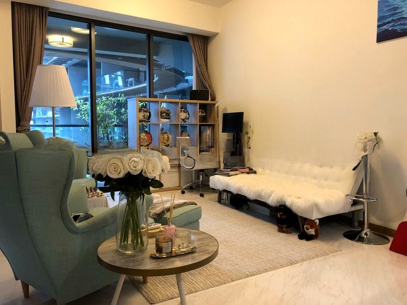 This brand-new 2-bedroom unit boasts a thoughtful layout with standout features including floor-to-ceiling windows, a decked balcony with glass railing, and integrated cabinet lighting that enhances the sleek design. The master bedroom offers pendant lighting and wooden flooring, while the versatile study features glossy built-in wardrobes and an integrated Murphy bed, perfect for guests or as a home office.
