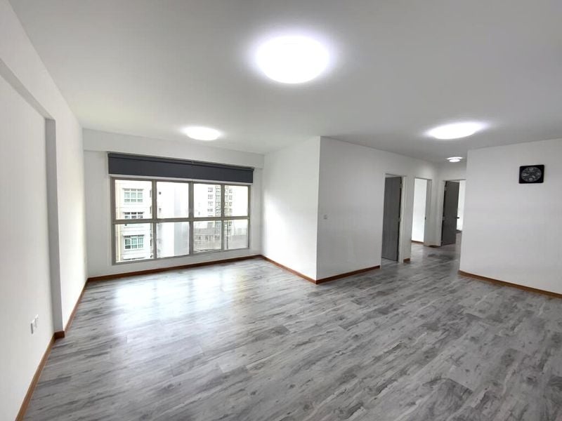 This thoughtfully designed unit features spacious bedrooms, each equipped with built-in wardrobes and study desks, perfect for both relaxation and productivity. The minimalist third bedroom offers a serene retreat, complemented by roller blinds for added privacy. With a floor area of 990 sqft, the layout maximizes space and comfort, making it ideal for families or professionals.