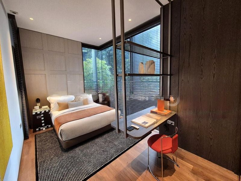 Step into a world of luxury and modern elegance at 3 Orchard By-The-Park. As you enter this meticulously designed unit, you are greeted by abundant natural light streaming through the floor-to-ceiling glass windows, showcasing breathtaking views of the city skyline and lush greenery. The ambiance is both inviting and sophisticated, enhanced by the geometric designer feature wall and the exquisite marble-topped dining table that beckons for memorable gatherings.