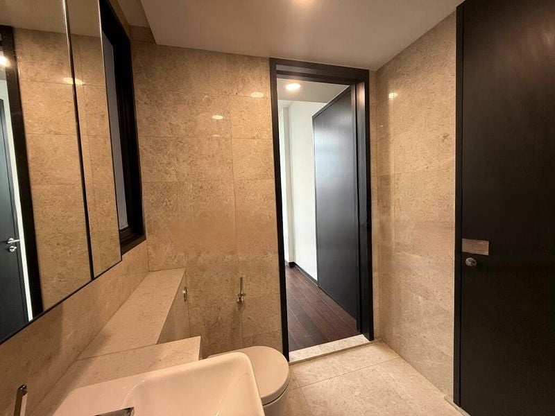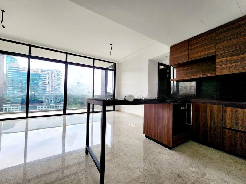 Step into this beautifully renovated unit at Pullman Residences Newton, where abundant natural light floods the space through floor-to-ceiling windows, creating a warm and inviting ambiance. The polished marble flooring in the living area complements the modern minimalist design, while the balcony offers unobstructed views of the city skyline and lush greenery, perfect for unwinding after a long day.