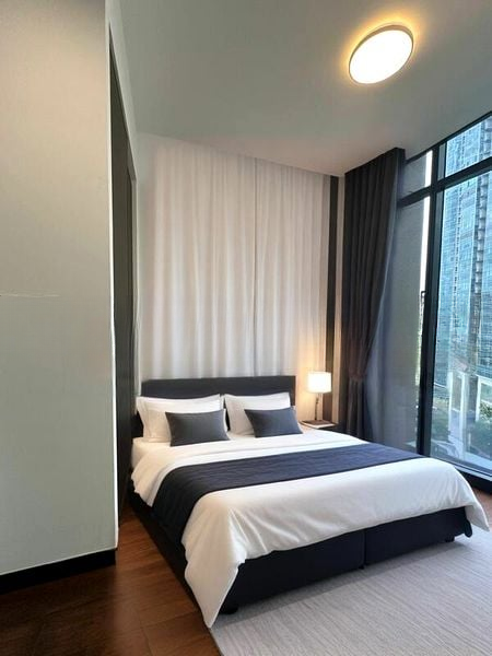 Step into a world of modern elegance as you enter this brand-new unit at Pullman Residences Newton. Bathed in abundant natural light, the open layout showcases dark wood flooring and a sleek ambiance that invites relaxation. Enjoy breathtaking views of the city skyline and lush greenery from your outdoor lounge, complete with a stylish glass pergola, perfect for unwinding after a long day.
