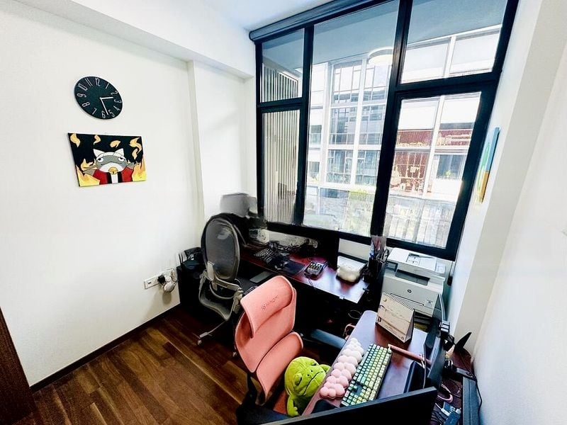 This well-maintained 2-bedroom, 2-bathroom unit features standout highlights such as a spacious study with dual workstations, a luxurious bathroom complete with a rain shower, and a modern vanity with integrated mirror storage. The master bedroom boasts a wall-mounted TV and a built-in sliding wardrobe, ensuring both comfort and convenience. The thoughtful layout maximizes space while providing a seamless flow between rooms.