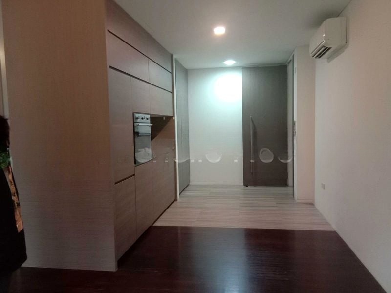 Step into a serene oasis at Seletar Park Residence, where modern minimalist design meets the tranquility of nature. The moment you enter this well-maintained 1-bedroom unit, you are greeted by an abundance of natural light filtering through large windows, illuminating the dark wood flooring and creating a warm ambiance. The open-concept living area seamlessly connects to a charming balcony adorned with wood decking and glass railings, offering picturesque views of lush greenery and neighboring buildings.