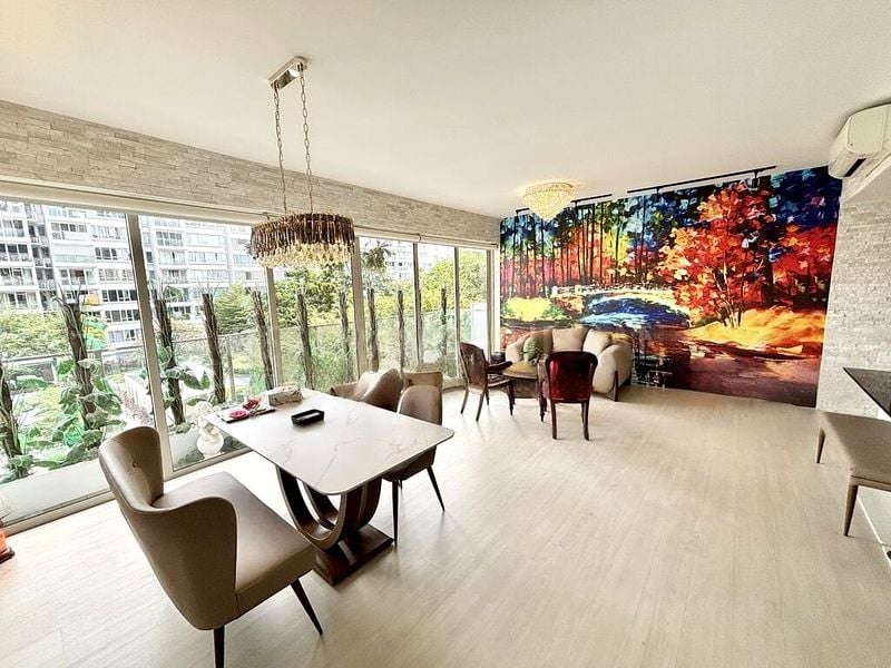 Step into a world of modern elegance as you enter this beautifully renovated unit at The Centris. Bathed in abundant natural light, the living area features an S-shaped sculptural partition that seamlessly divides the space while enhancing the aesthetic. Floor-to-ceiling sliding glass doors frame stunning views of the greenery and urban landscape, creating a serene ambiance that invites relaxation.