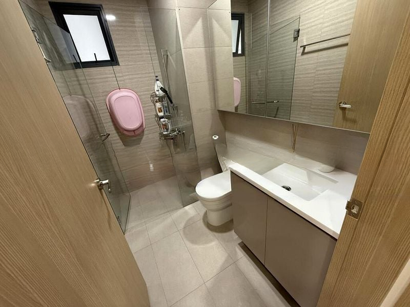 Step into a world of modern elegance as you enter this beautifully renovated 3-bedroom unit at Wandervale. The abundant natural light floods the open-concept living room, highlighting the stunning marble-look feature wall and the warm wood slat accents. Enjoy seamless access to the balcony, where you can unwind while soaking in the tranquil views, all complemented by recessed and integrated LED lighting that enhances the minimalist ambiance.