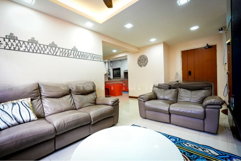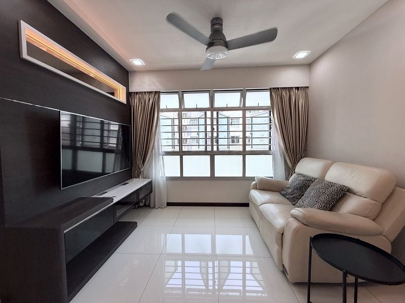 This well-maintained 3-bedroom flat boasts an efficient layout, including a master bedroom with an en-suite bathroom, two additional bedrooms, and a household shelter. The stylish dining area, complete with modern pendant lighting, seamlessly connects to the kitchen and living space, perfect for entertaining. Each bedroom is thoughtfully designed, with unique accent walls that add character to the home.