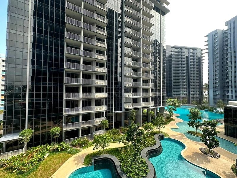 Step into a world of modern elegance as you enter this brand-new 2-bedroom unit at The Florence Residences. Bathed in abundant natural light, the open-concept living area features large format floor tiles and floor-to-ceiling windows that frame serene views of the pool and lush greenery, creating a tranquil ambiance that invites relaxation.
