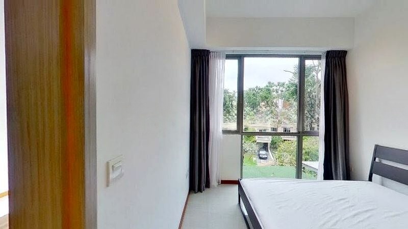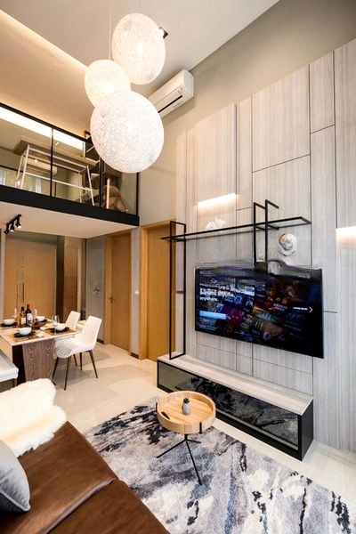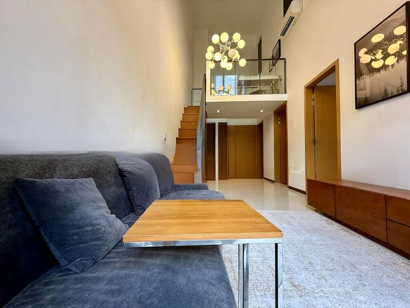 Step into a bright and airy sanctuary at Pollen & Bleu, where abundant natural light floods through floor-to-ceiling windows, offering serene views of lush greenery and low-rise residences. The high ceiling loft design enhances the spacious ambiance, creating an inviting atmosphere that feels both modern and tranquil.