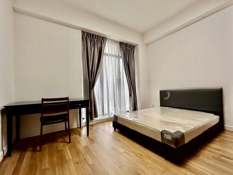 Step into a sanctuary of modern elegance where abundant natural light floods the space, highlighting the polished stone flooring and contemporary finishes. The unblocked views of the city skyline and lush greenery create a serene ambiance, making every moment spent here feel special.