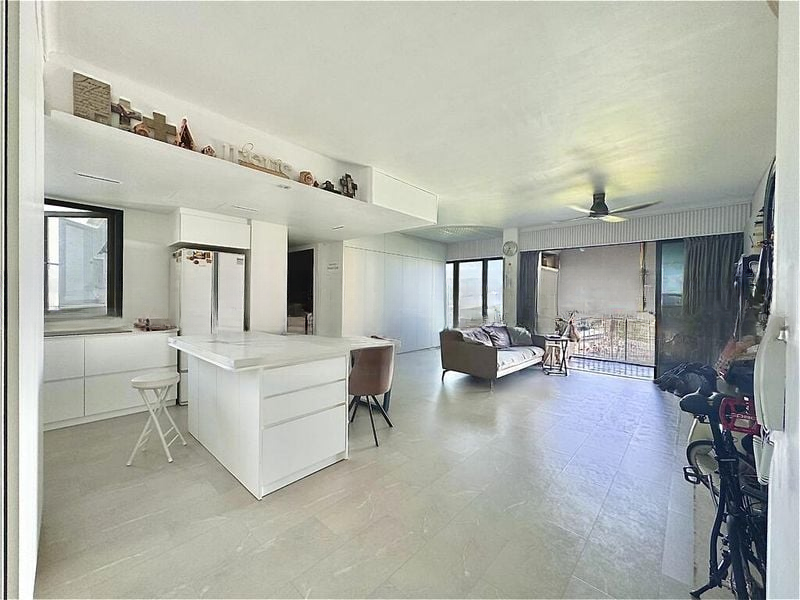 This well-maintained 3-bedroom unit features standout elements such as a stylish kitchen island, integrated laundry area, and extensive built-in storage throughout. The living room seamlessly connects to a balcony, perfect for enjoying the fresh air. Each bedroom is thoughtfully designed with a built-in study desk and overhead storage, while the bathrooms boast modern fixtures and a glass shower partition, ensuring comfort and functionality.