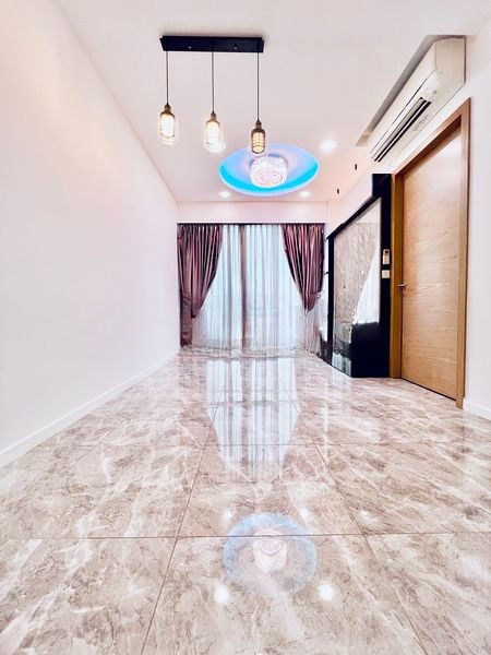 Step into a brand-new sanctuary where modern minimalism meets comfort. The open-concept living area, adorned with elegant marble-look floor tiles and bathed in natural light, invites you to relax and unwind. Sliding glass doors lead to a charming balcony, perfect for enjoying serene views of the surrounding greenery.