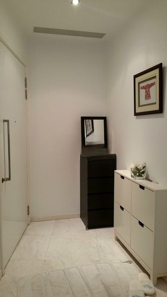 This well-maintained unit boasts a thoughtful layout with four spacious bedrooms and four modern bathrooms. The open-concept living room seamlessly flows into the galley kitchen, featuring a mobile island on wheels and integrated stainless steel appliances. Each bathroom is a sanctuary, with glass-enclosed bathtubs and rain showers, while the master bedroom offers polished wood flooring and an internal glass window partition for added elegance.