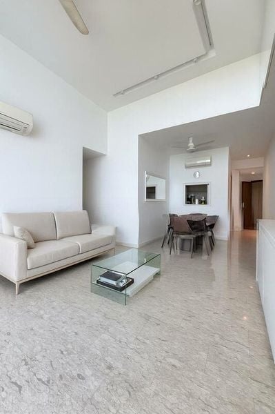 Step into a bright and airy sanctuary at The Eden at Tampines, where abundant natural light floods through floor-to-ceiling windows, creating an inviting ambiance. The spacious open-plan living and dining area, adorned with light-colored tiled flooring and dual ceiling fans, offers a seamless flow that enhances the sense of space and comfort. Enjoy picturesque views of lush greenery and the sparkling pool from the comfort of your home.