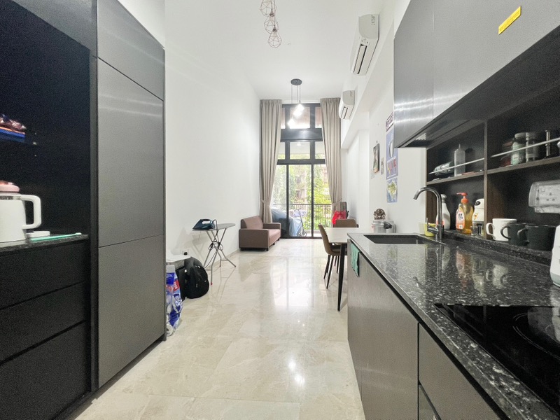 Step into this beautifully maintained 2-bedroom unit at Daintree Residence and be greeted by an abundance of natural light pouring through the floor-to-ceiling windows. The modern minimalist design, complemented by high ceilings and marble-look floor tiles, creates an inviting ambiance that feels both spacious and serene. Enjoy picturesque views of the lush greenery and the large swimming pool from your living area, making every moment spent here a visual delight.