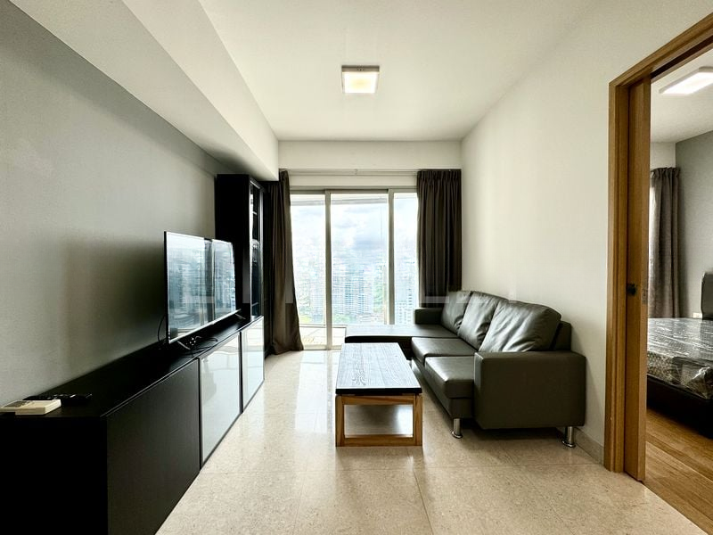 Step into a world of modern elegance as you enter this beautifully renovated 3-bedroom unit at Eight Riversuites. Bathed in natural light, the open-concept living room features floor-to-ceiling sliding doors that lead to a private balcony, offering breathtaking views of the city skyline. The minimalist decor, complemented by light wood parquet flooring, creates a serene ambiance that invites relaxation and comfort.