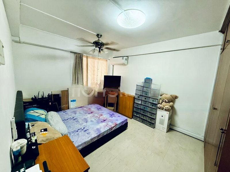 Step into a cozy haven where comfort meets functionality. This well-maintained 2-bedroom flat welcomes you with moderate natural light, highlighting the warm wood-look laminate flooring and the inviting ambiance. The living room, featuring a dining area and a comfortable sofa, offers a glimpse of urban views framed by the surrounding HDB blocks, creating a lived-in feel that instantly makes you feel at home.