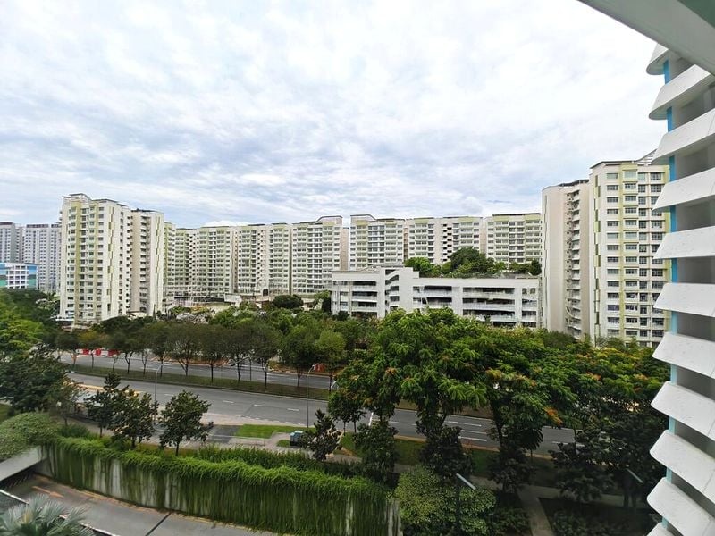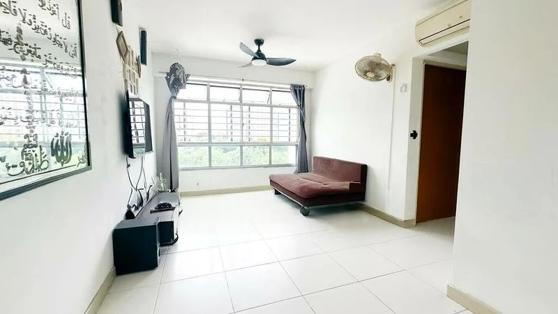 Step into a beautifully renovated 5-room HDB unit that exudes a bright and airy ambiance, enhanced by abundant natural light streaming through large windows. The polished floor tiles and stone-look feature wall create an inviting atmosphere, while the recessed ceiling with track lighting adds a modern touch. Enjoy serene views of greenery and the urban landscape from your spacious balcony, perfect for relaxation.