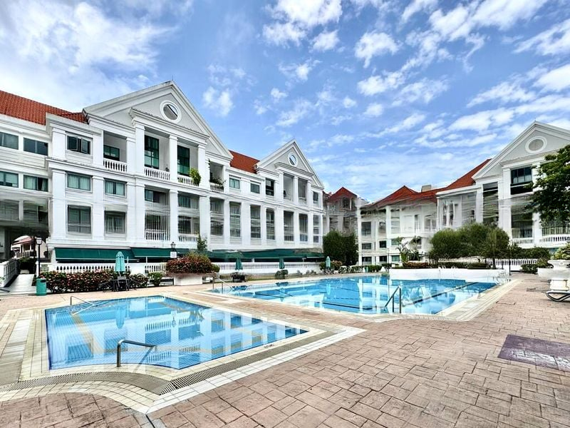Step into a warm and inviting atmosphere as you enter this well-maintained 3-bedroom unit at Stratford Court. The cozy ambiance is enhanced by moderate natural light filtering through large windows, illuminating the wood flooring in the bedrooms and the tiled living area. The highlight is the spacious balcony, offering unobstructed views of lush greenery, perfect for unwinding after a long day.