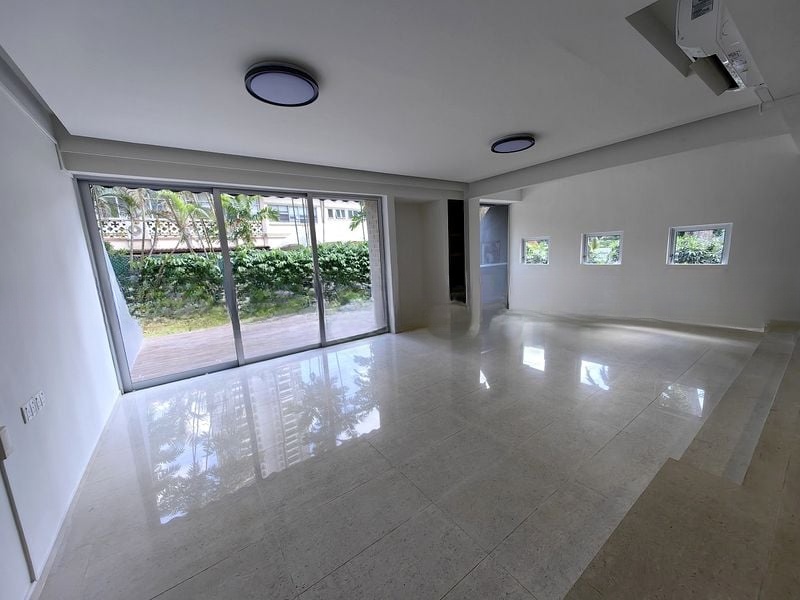 Step into a world of elegance and tranquility as you enter this beautifully renovated 3-bedroom unit at Chancery Court. The bright and airy ambiance is accentuated by abundant natural light streaming through the large floor-to-ceiling sliding glass doors, offering picturesque views of lush greenery. The polished tile flooring throughout enhances the spaciousness, inviting you to relax and unwind in this serene setting.