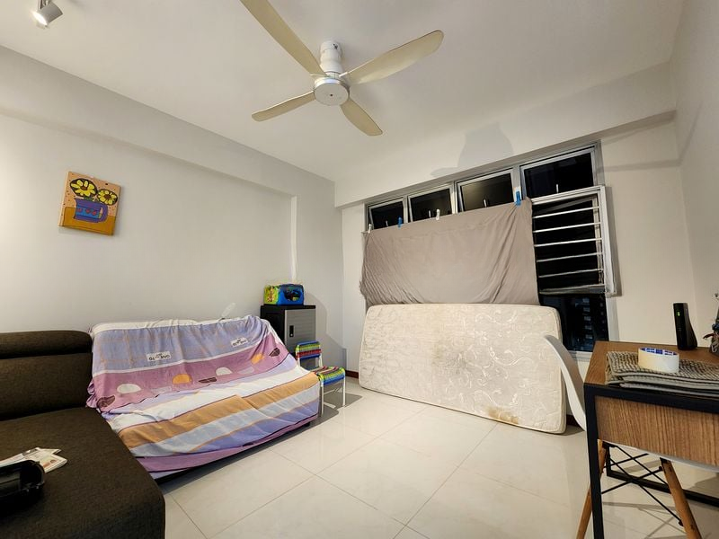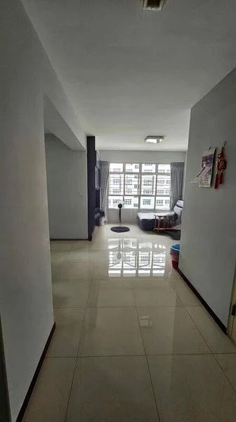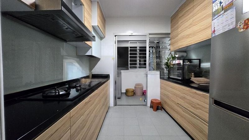 Step into this beautifully renovated HDB flat and be greeted by abundant natural light that fills the bright and airy living space. The unblocked greenery view creates a serene ambiance, complemented by modern finishes and a welcoming atmosphere. The L-shaped leather sofa and recessed lighting enhance the living room, making it the perfect spot for relaxation and gatherings.