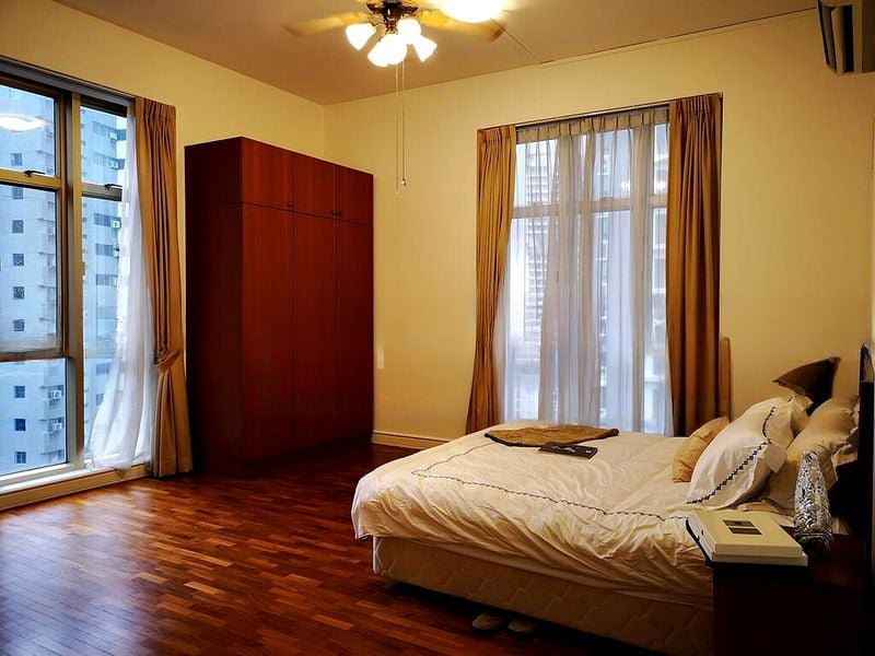 Step into a world of elegance as you enter this well-maintained 4-bedroom unit at Leonie Condotel. The polished marble flooring reflects abundant natural light, creating a bright and airy ambiance throughout. Floor-to-ceiling glass doors in the living room lead to a spacious balcony, where you can unwind while enjoying unobstructed views of the city skyline.
