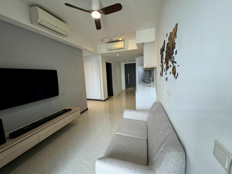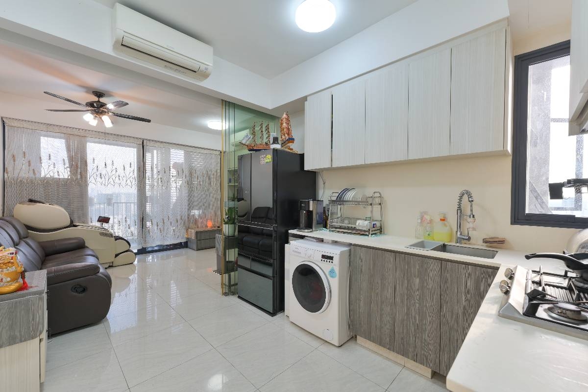 Step into a world of modern elegance as you enter this beautifully renovated unit at GEM RESIDENCES. The abundant natural light floods the open-concept living space, highlighting the sleek tiled flooring and the striking grey accent wall. With unobstructed views of the city skyline and the iconic Singapore Flyer, this home offers a breathtaking backdrop that elevates everyday living.
