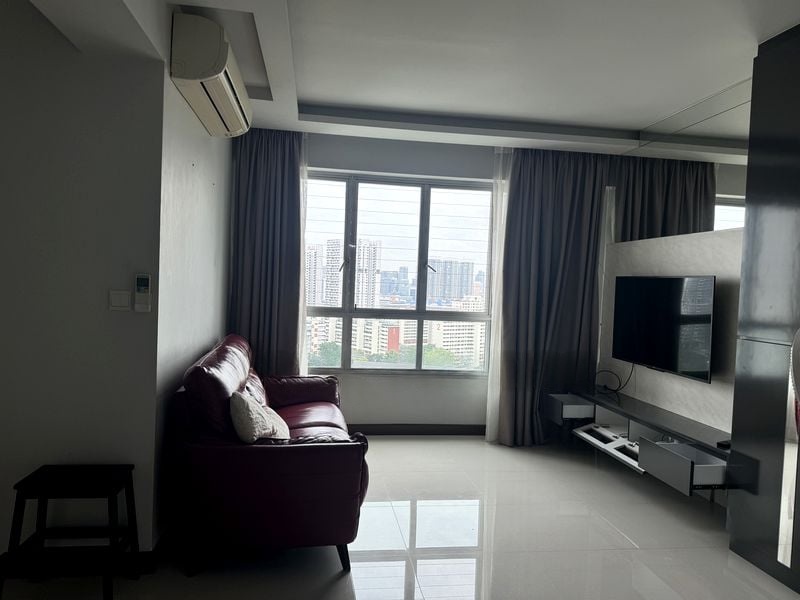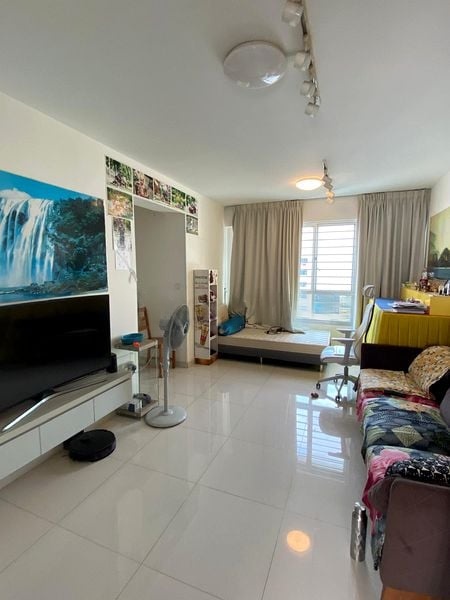Step into this beautifully renovated HDB flat and be greeted by a serene ambiance that combines modern minimalism with functional elegance. The wood-look flooring flows seamlessly throughout the unit, while large windows invite moderate natural light, creating a warm and inviting atmosphere. Enjoy views of lush greenery juxtaposed with urban buildings, offering a refreshing escape from the hustle and bustle of city life.